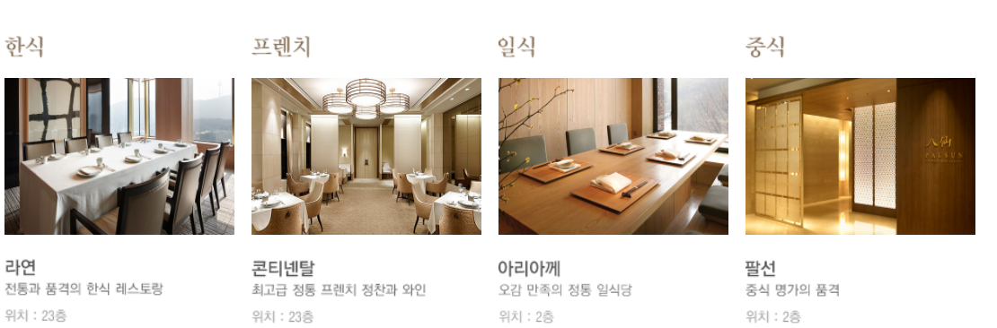 레스토랑(라연, 콘티넨탈, 아리아께, 팔선)