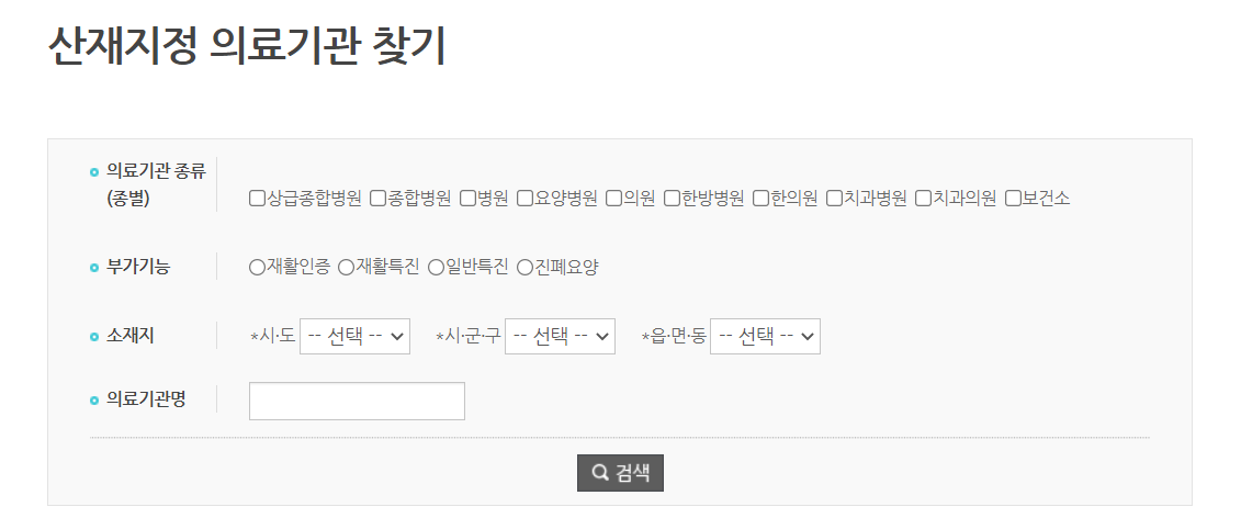 산재지정 의료기관 찾기는 근로복지공단 홈페이지에서 확인할 수 있습니다. 근로복지공단 홈페이지) 고객소통) 민원/조회) 산재지정 의료기관 찾기