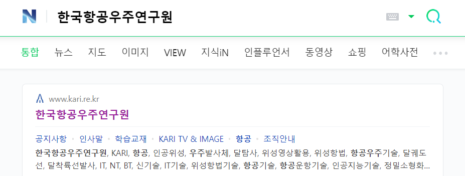 한국항공우주연구원 홈페이지는 포털 검색창에 한국항공우주연구원을 입력하고 검색을 클릭하면 됩니다.