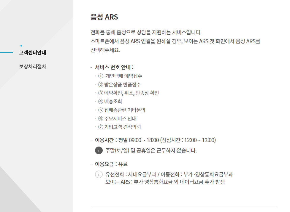 3) 고객센터 이용요금은 유료이며 유선전화는 시내요금부과 / 이동전화는 부가 및 영상통화요금부과가 되며 보이는 ARS의 경우 부가 영상통화요금 외에도 데이터요금이 추가 발생합니다.
