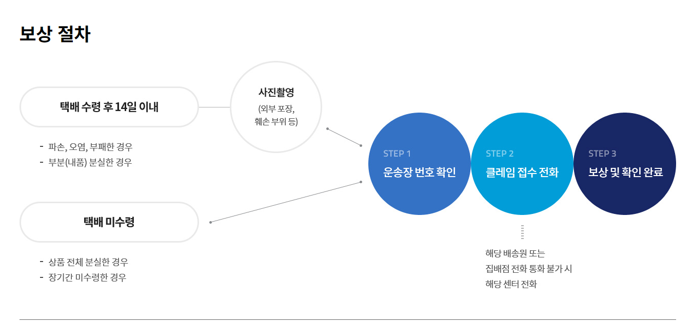 택배 파손, 오염, 부패, 분실 등의 사유로 보상을 받아야할때 다음과 같은 절차에 따라 보상이 진행됩니다. 먼저 택배 수령후 14일 이내 혹은 미수령시 사진촬영을 하고 운송장번호를 확인합니다.