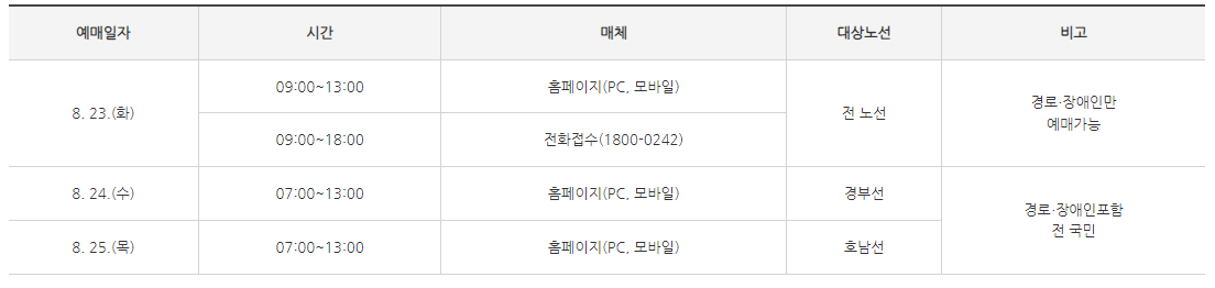 1) 경로, 장애인 우선 예매 - 8.23 (화)