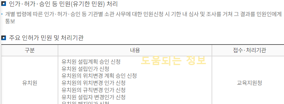 민원의 유형은 진정/일반질의/법령질의/건의민원과 유치원/학교법인/학원/공익법인/비영리민간단체/교습소/개인과외 등 인허가 민원으로 나누어집니다.