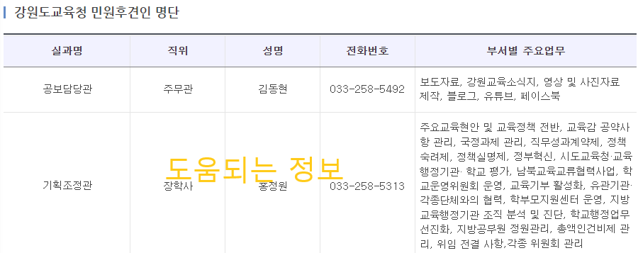 강원도교육청은 강원도 춘천시 영서로에 위치하고 있습니다. 교육청은 학생, 학부모, 교직원, 일반인에게 교육관련업무를 총괄하는곳입니다. 많은분들이 교육청 민원에 대해 궁금해하십니다. 민원은 어떤 법률에 대한 해석이나 문제가 발생했을때 문제를 처리하기 위해 신청합니다. 민원은 방문민원과 전화로 상담하는것 이 두가지가 있습니다. 하나씩 간단하게 소개하겠습니다.