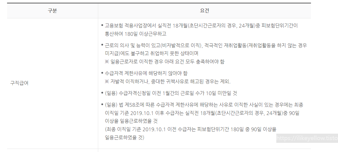 - 고용보험에 가입이 되어있어야합니다. 미가입시 실업급여 신청이 불가합니다.