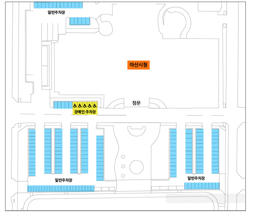 아산시청을 방문하는 분들은 아산시청 주소 충남 아산시 시민로 456 를 참고하시고, 차량을 이용하는분들은 주차장 위치를 아래 그림에서 확인하실수 있습니다. 아산시청 정문 좌측에 장애인주차장이 있고 일반주차장은 아산시청 후문 부근, 아산시청 정문 앞에 있습니다.