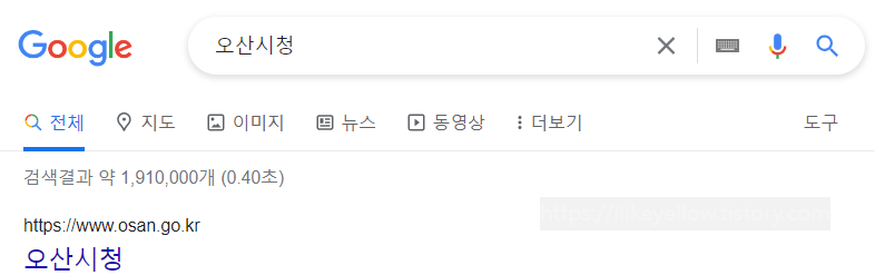 1) 자주이용하는 포털검색창에 "오산시청"을 입력하면 상단에 오산시청 홈페이지 주소가 나옵니다.