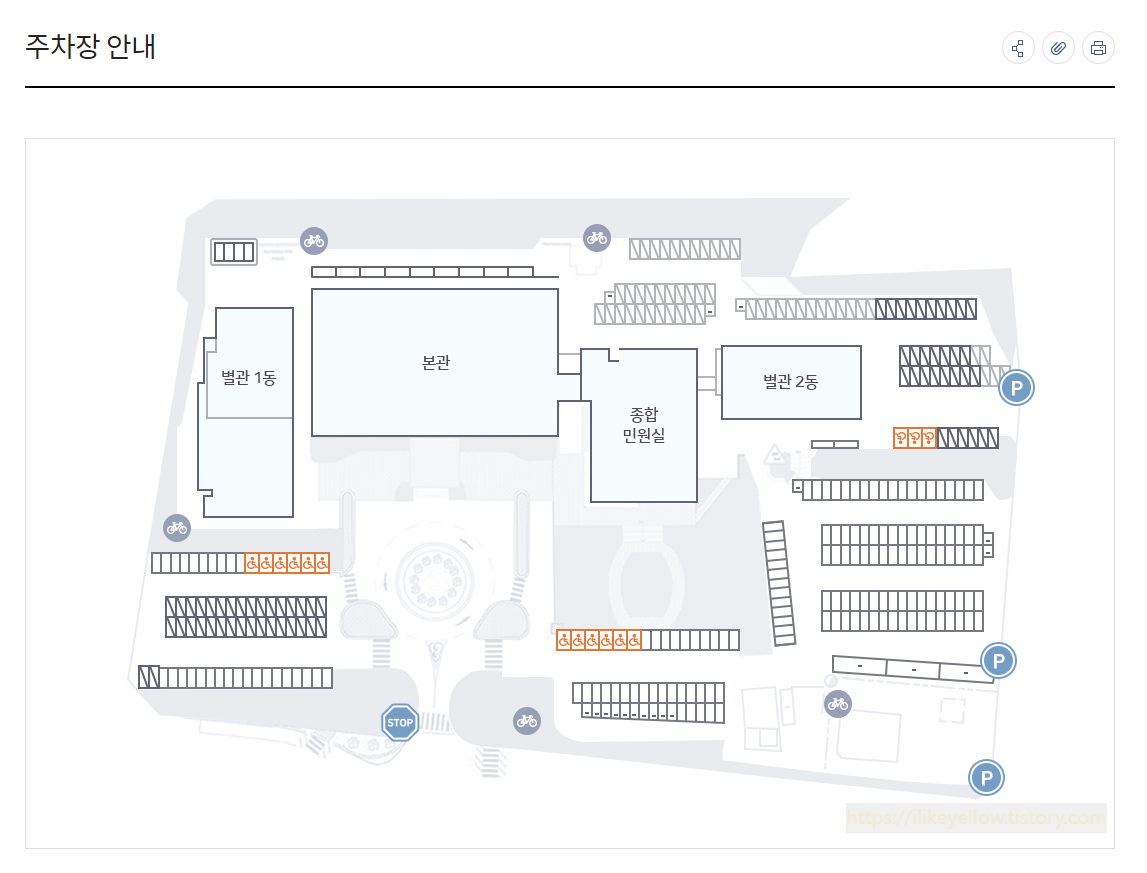 - 공주시청 주차장입니다. 본관 뒷편, 별관 1동, 정문부근에 자전거보관소도 있습니다. 자전거 이용객은 참고하시기 바랍니다.