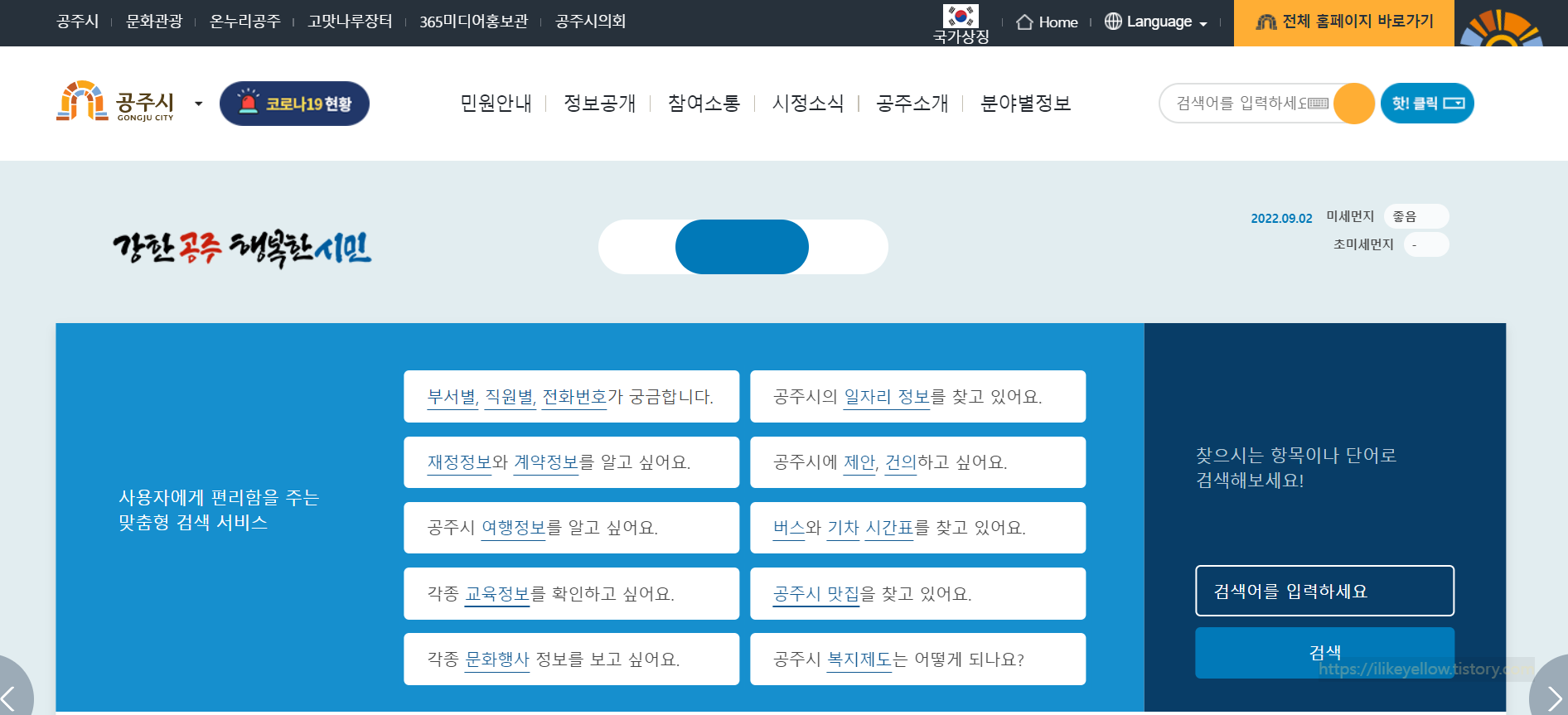 - 다음은 공주시청 홈페이지 첫화면입니다.