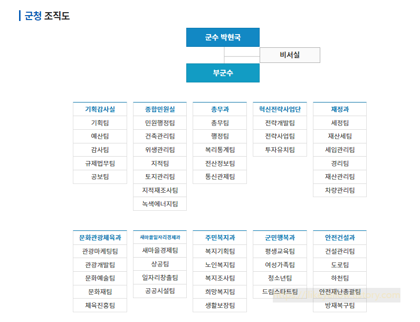 2. 봉화군청 조직도, 직원검색, 전화번호