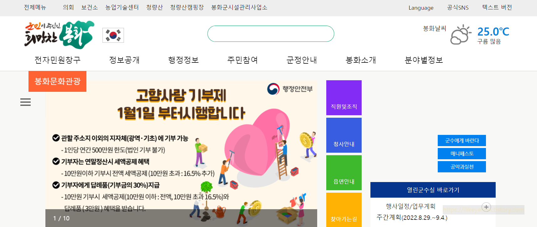 봉화군청 홈페이지 더보기 https://www.bonghwa.go.kr