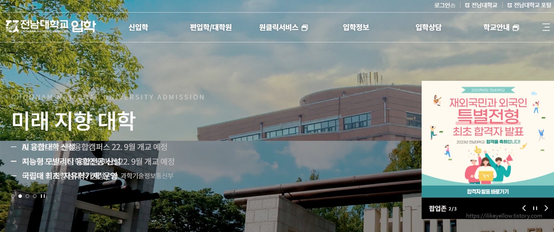 전남대 입학 희망을 원하는 분들은 아래 입학처 홈페이지에 접속하시어 유용한 정보를 알아보시기 바랍니다.