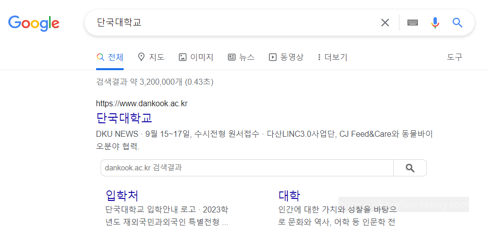단국대학교 홈페이지 URL - https://www.dankook.ac.kr/web/kor