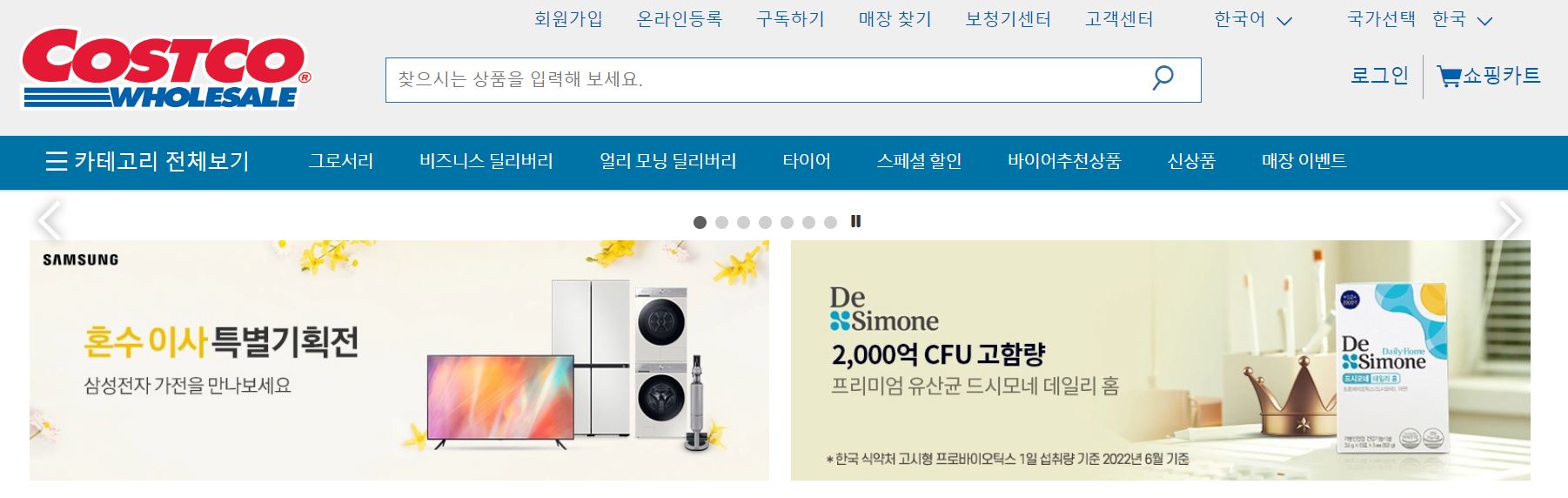 코스트코 홈페이지 첫 화면은 아래와 같습니다.