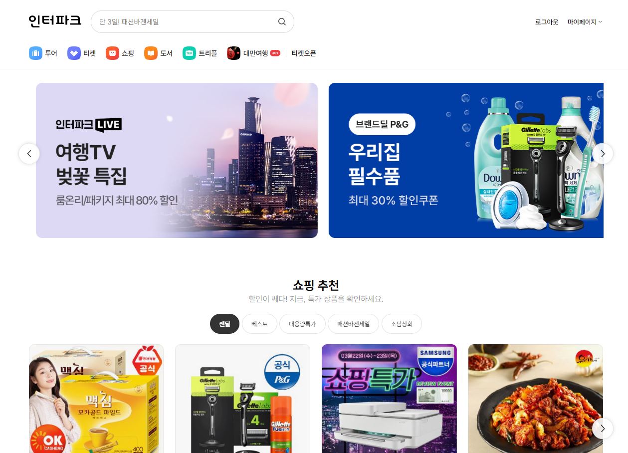 구글 검색창에 인터파크 쇼핑을 입력하고 검색하면 인터파크 쇼핑 홈페이지가 나옵니다.