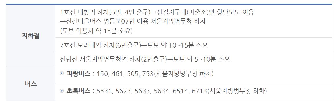 서울지방병무청 방문예정이신분들은 아래 대중교통안내를 참고하면 도움이 될 것입니다.
