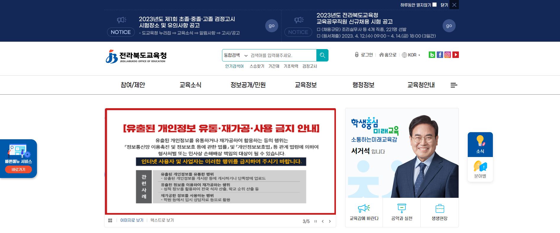 전라북도교육청 홈페이지 바로가기