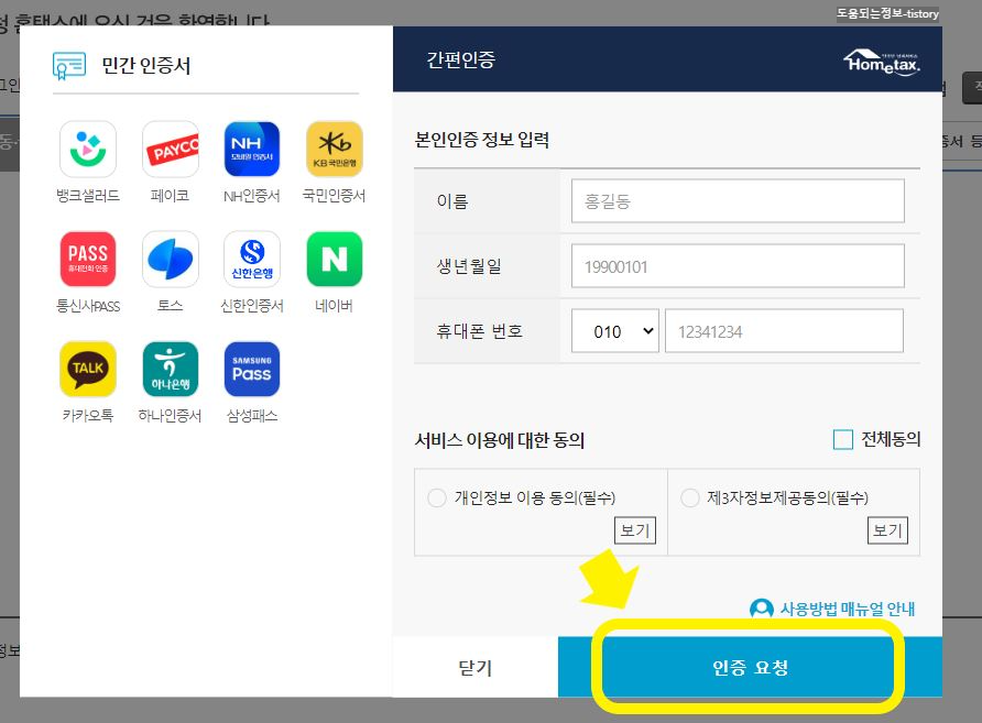 홈택스 이용을 원하는 경우 본인 확인이 되어야 합니다.