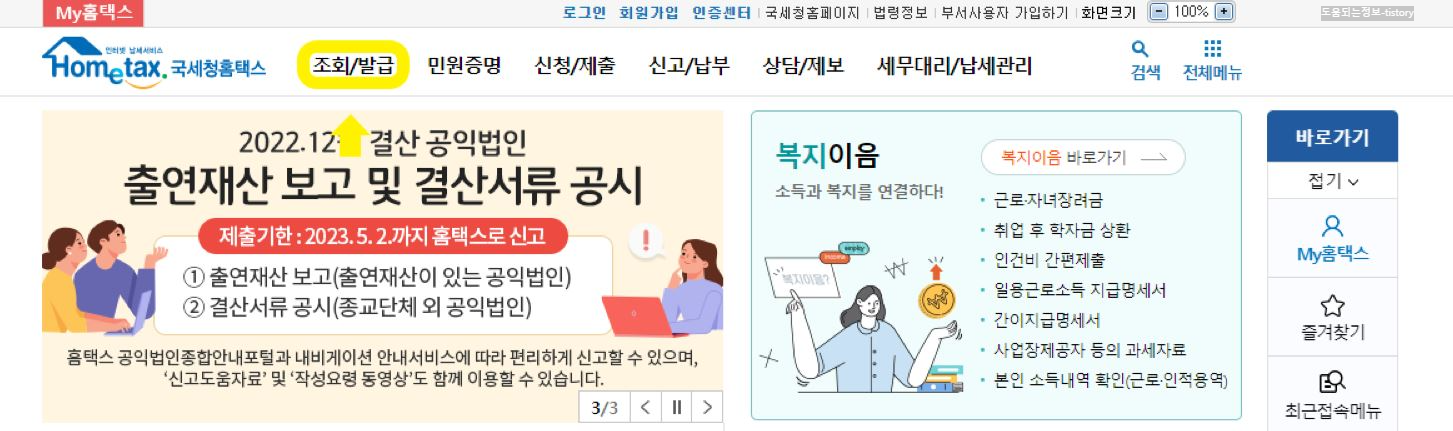 현금영수증 조회 방법 - 홈택스 홈페이지 바로가기