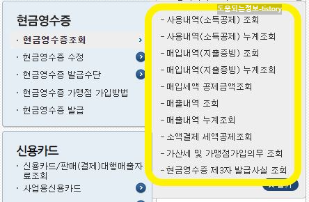 홈택스 현금영수증조회 메뉴는 다음과 같습니다.