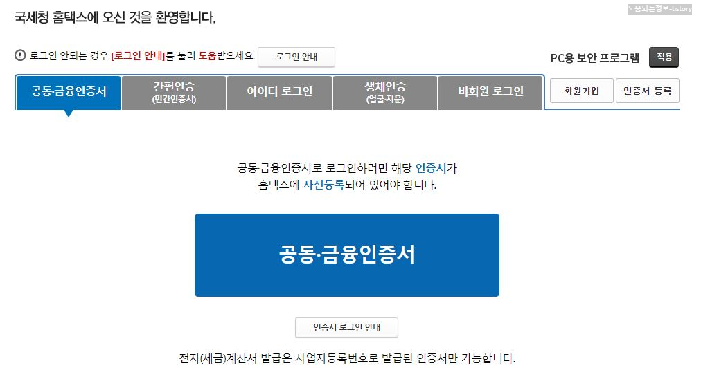 홈택스 홈페이지 첫화면은 아래와 같습니다.
