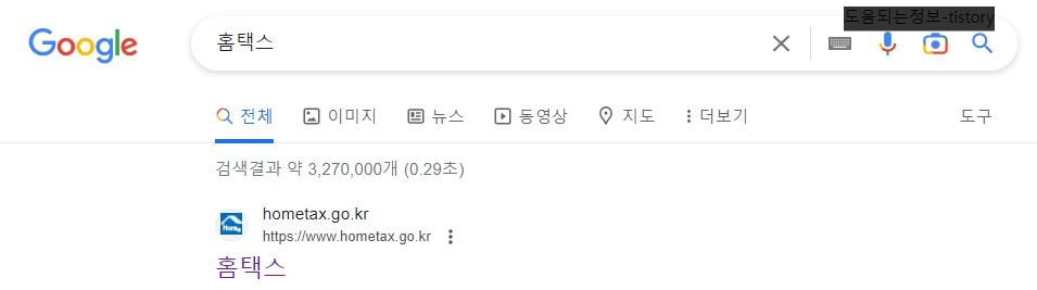 구글에 국세청이나 홈택스를 입력하고 검색합니다. 홈택스를 입력해도 바로 주소가 나오니 홈택스라고 입력해 보겠습니다.