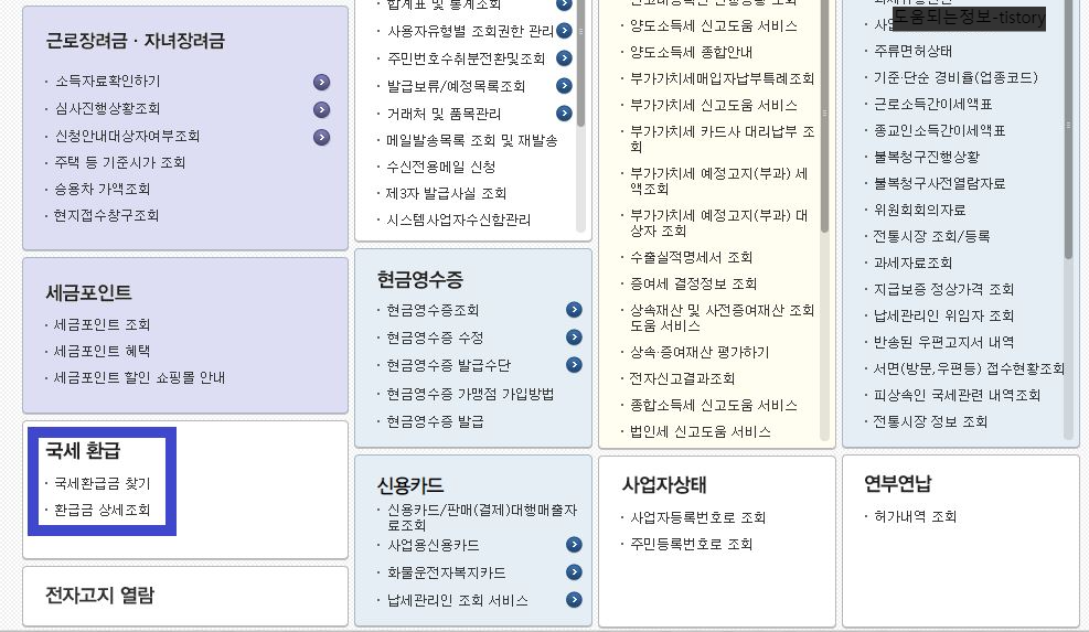 국세환급금 조회방법 - 국세청 홈페이지 바로가기