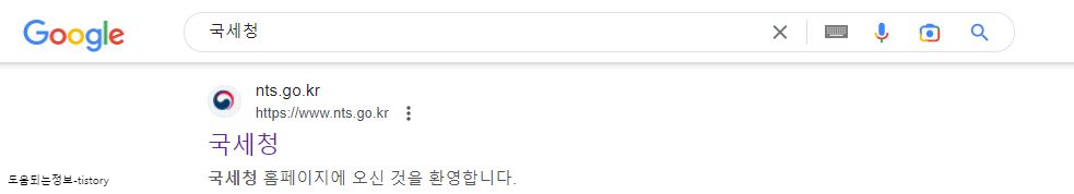 1) 구글 검색창에 국세청을 입력하고 국세청 홈택스 홈페이지에 접근합니다. (https://www.nts.go.kr/)