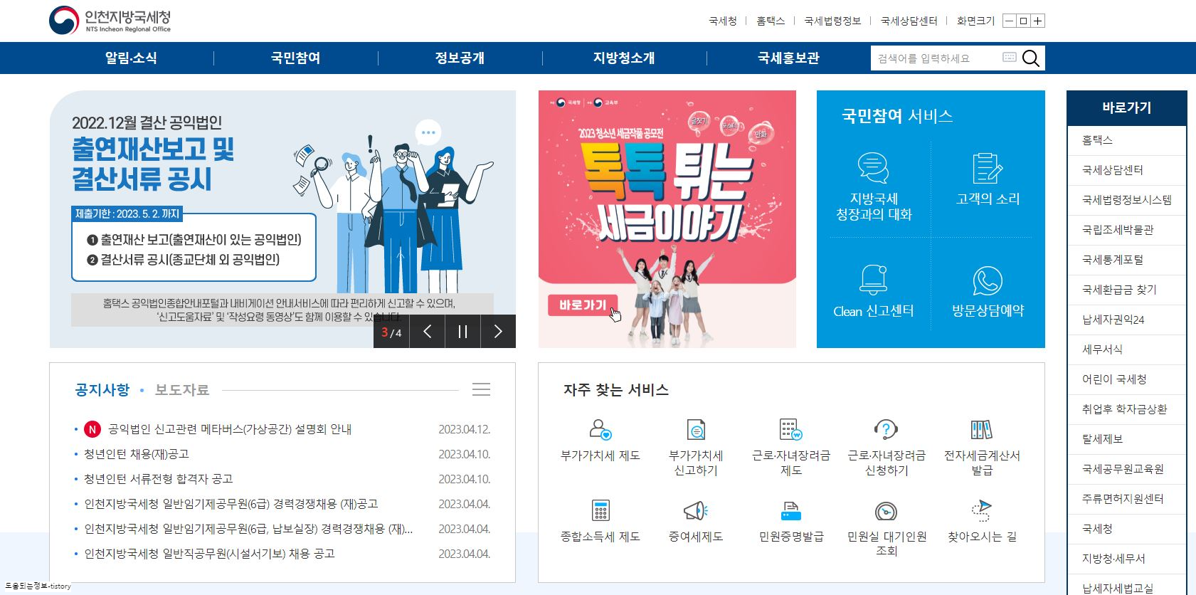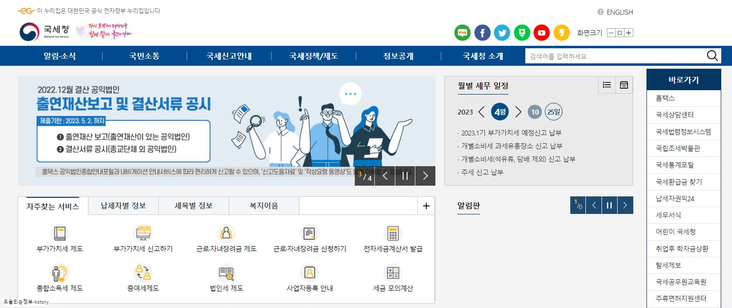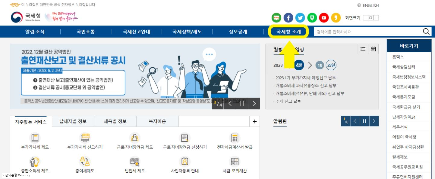 2) 여기에서 국세청홈페이지에 접근합니다.