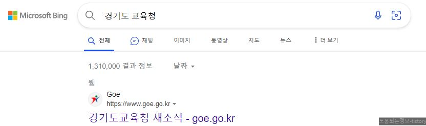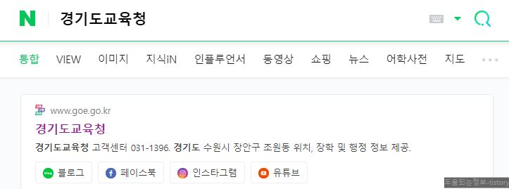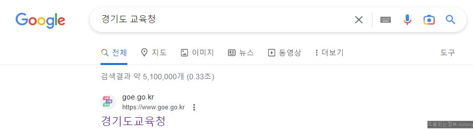 1. 구글 검색창이나 다른 포털 검색창에 '경기도 교육청'을 입력하고 검색하면 경기도 교육청 홈페이지 주소 (https://www.goe.go.kr)가 나옵니다. 여기에 접근하면 경기도 교육청 홈페이지를 이용할 수 있습니다.