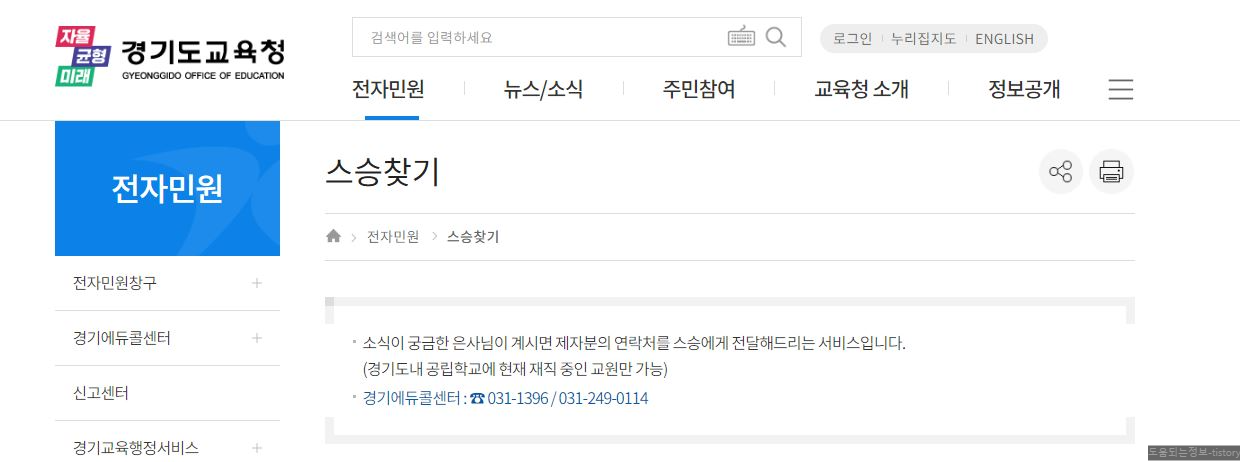 여기에서는 경기도 교육청 스승 찾기 서비스를 알려드리려고 합니다.