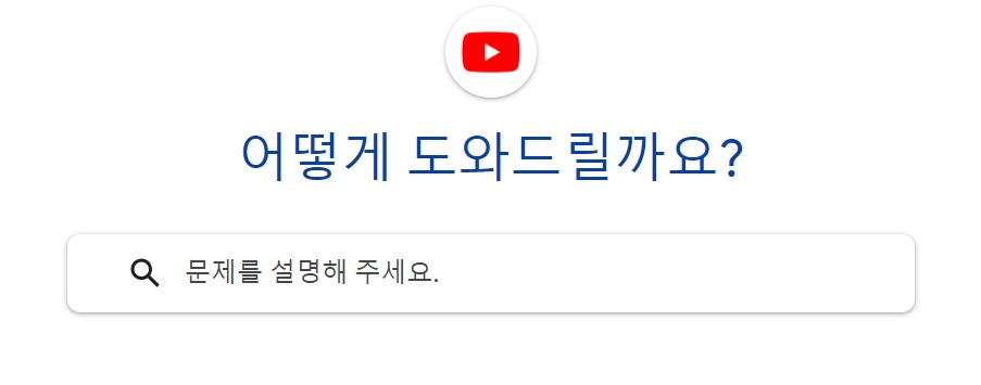1) 유튜브 고객센터 '문제를 설명해 주세요.'에 문의사항을 간단하게 입력하고 검색을 합니다.