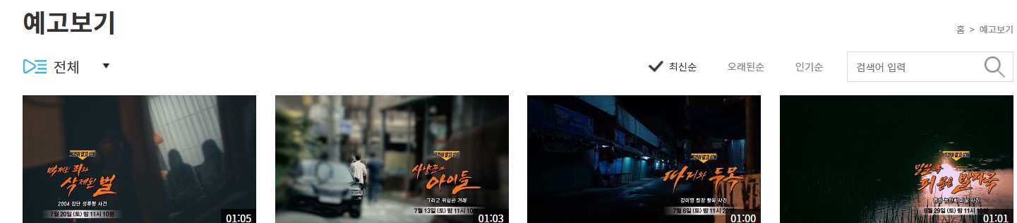 그것이 알고싶다 홈페이지에는 다시 보기 뿐만 아니라 예고도 확인할 수 있습니다.