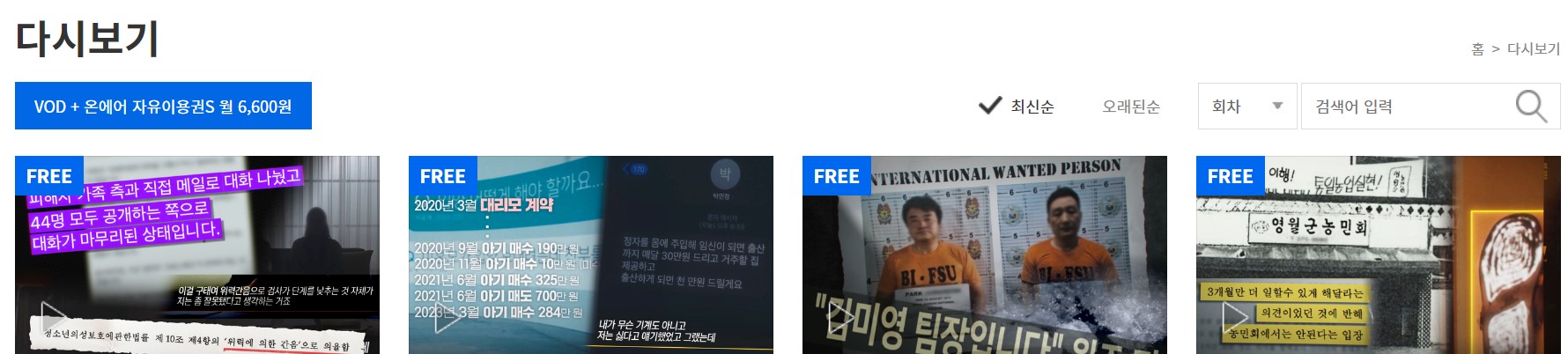 그것이 알고싶다는 일반화질로 무료로 다시 보기 서비스를 제공하고 있는데요 별도의 로그인을 하지 않아도 볼 수 있습니다.