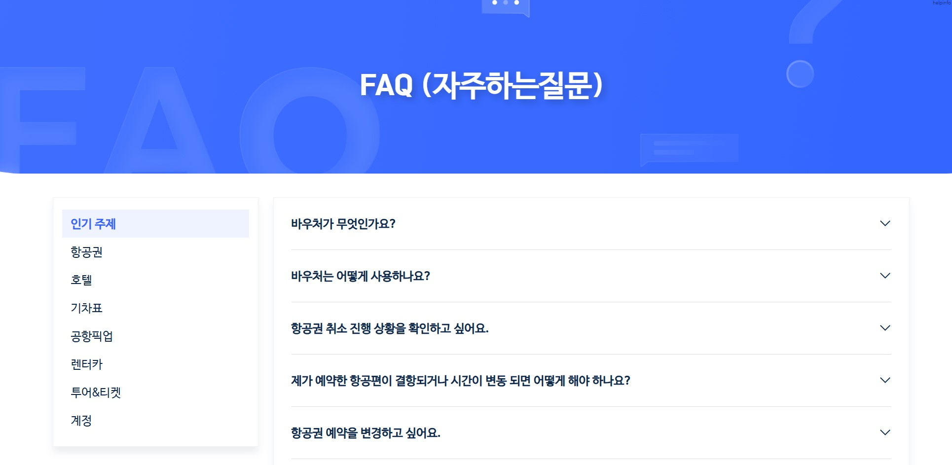트릿닷컴 고객센터 자주 하는 질문(FAQ)에서 항공권, 호텔, 기차표, 공항픽업, 렌터카, 투어/티켓, 계정 등에 대한 문의와 답변을 확인할 수 있습니다.