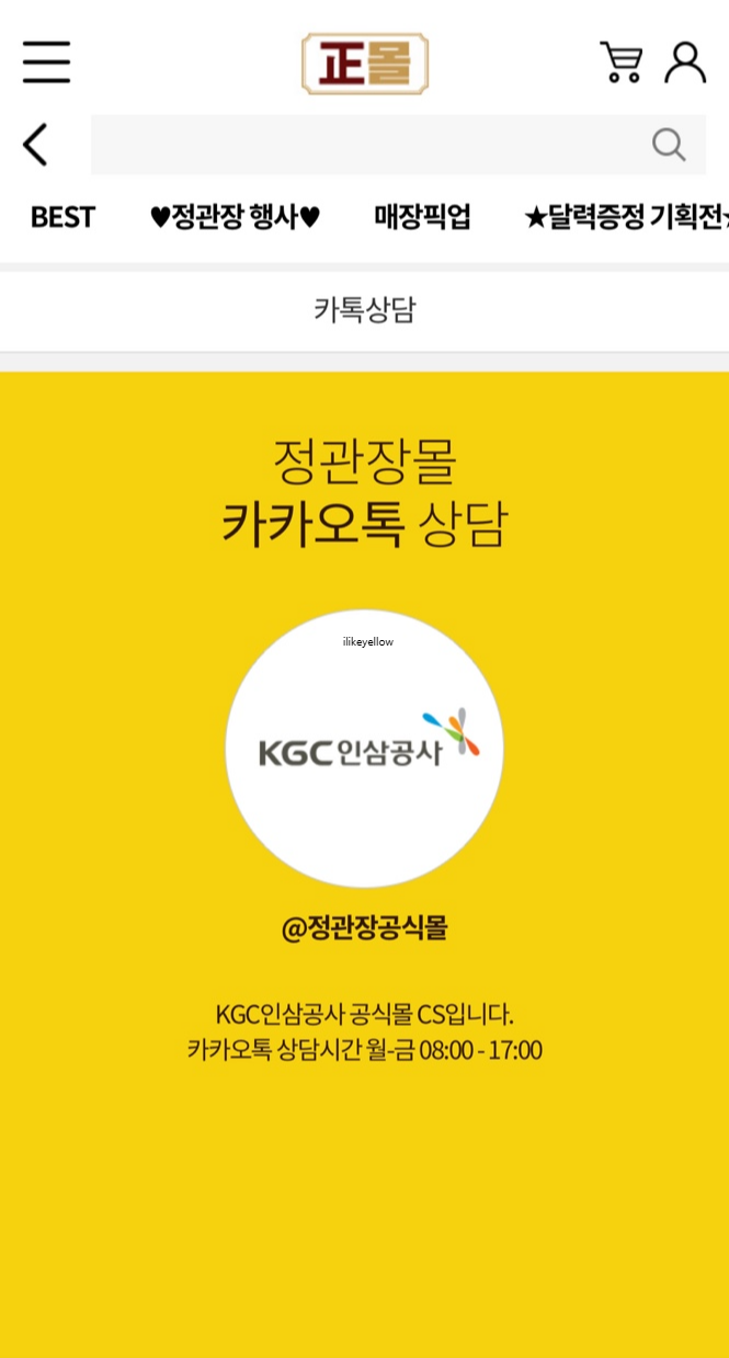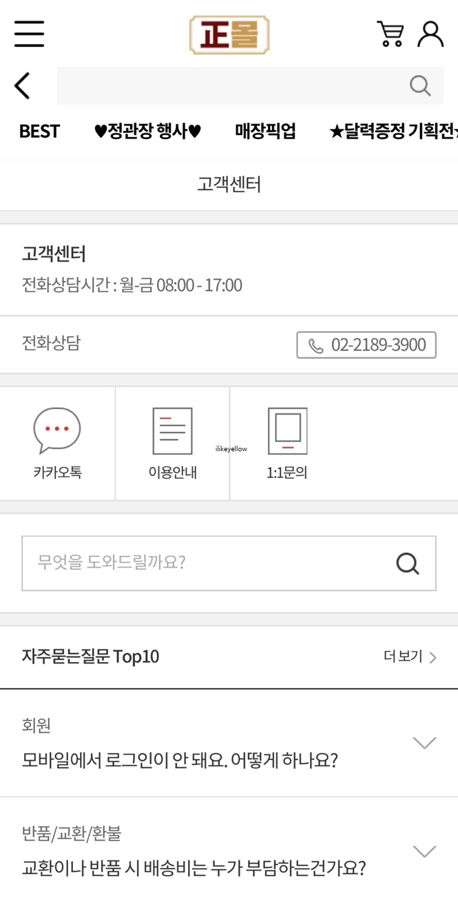 정관장 전용 앱에서도 손쉽게 고객센터를 이용할 수 있습니다.