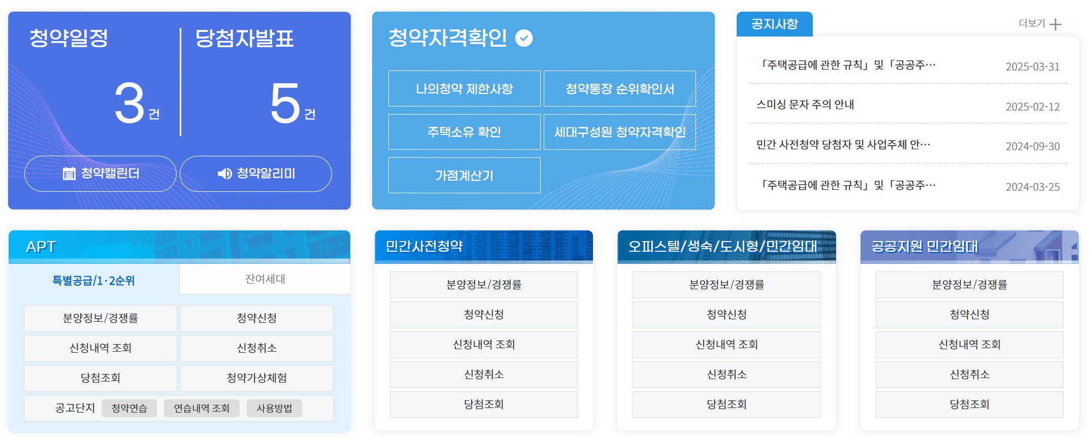 청약과 관련한 모든 서비스를 이 사이트에서 이용할 수 있습니다.