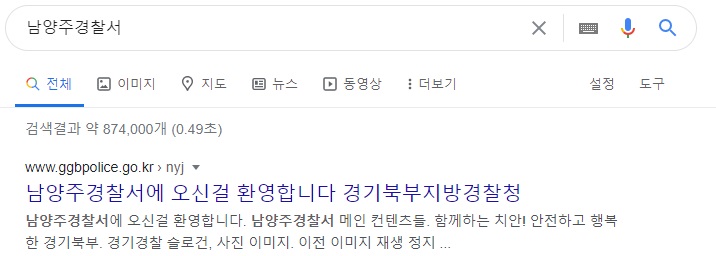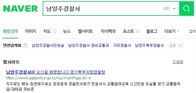 네이버에서도 제일 상단에 남양주경찰서 검색결과가 나옵니다.