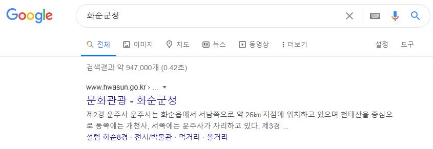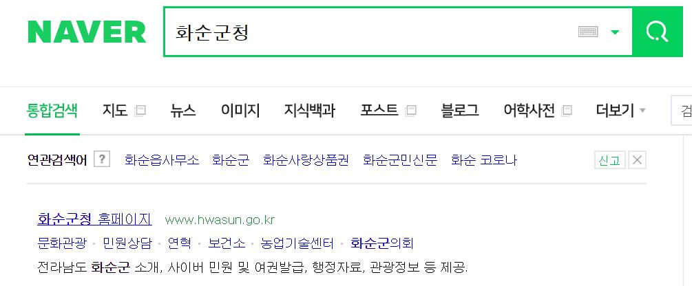 국내 포털사이트 검색창에 화순군청을 검색하면 상단에 홈페이지 주소가 나옵니다.