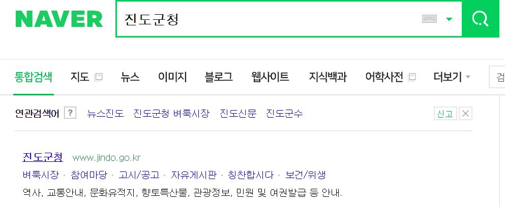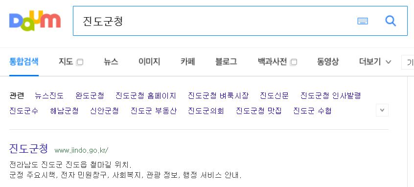 다음에서 진도군청을 검색했더니 상단에 진도군청 홈페이지 주소가 나옵니다.