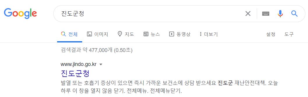 진도군청 홈페이지 접속을 위해서 국내 포털사이트 검색창에 진도군청을 검색하시면 됩니다.