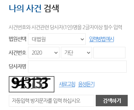 메인화면에서는 나의 사건검색 메뉴가 화면 우측 아래이 위치해 있기 때문에 보다 빠르게 나의 사건을 검색하여 진행상황을 확인하실 수 있습니다.