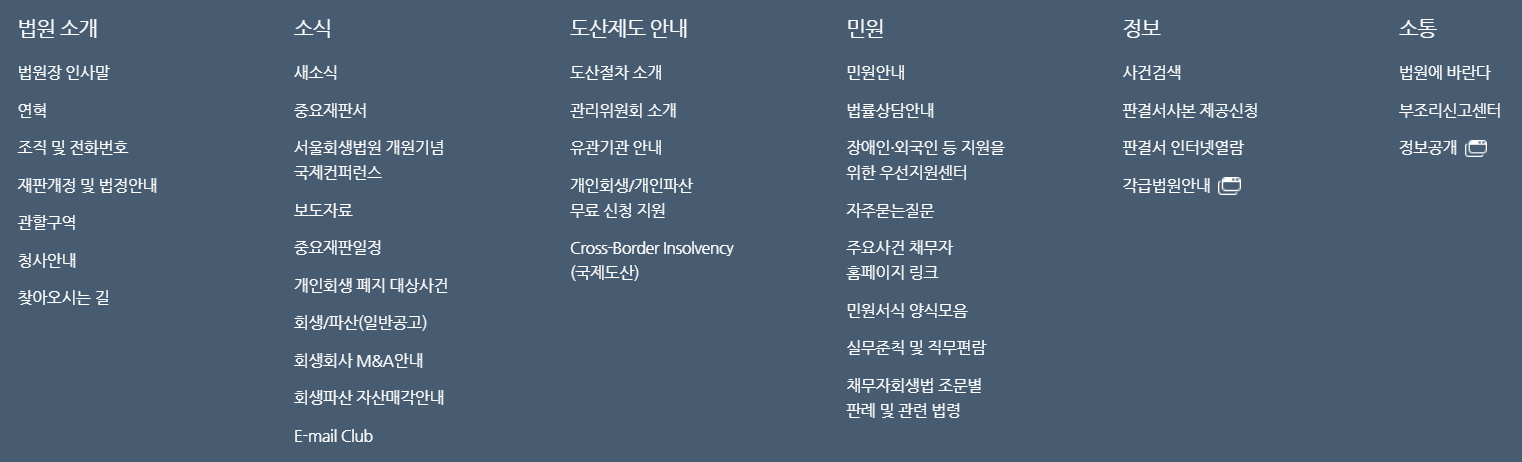 서울회생법원 홈페이지에서 알 수 있는 정보를 살펴보겠습니다.