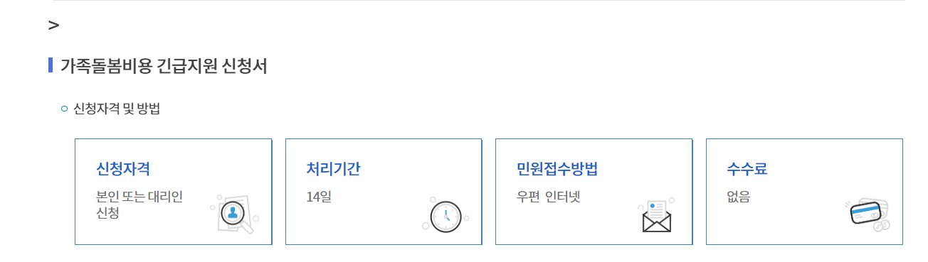 가족돌봄비용은 22년 한시적으로 지원하는 정책으로 코로나로 인해 근로자가 휴가를 낼 경우 하루에 1인당 10일 이내로 5만원 이내를 지원합니다. 신청기한은 22년 12월 16일까지라고 합니다.